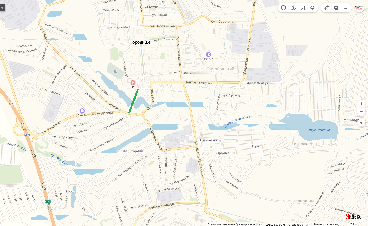 Если взглянуть на карту, то чисто технически объехать его можно. Для того, чтобы попасть в центральную часть, необходимо проехать по кругу по ул. Фрунзе или ул. Им. 62-й армии. Кроме того, из центральной части города можно добраться в юго-западную по односторонней ул. Советская. Однако во всех случаях получаются очень большие “крюки”. Кроме того, мост через Мечетку позволял очень быстро добраться до Центральной районной больницы, МФЦ, школы №1 и других важных частей города.