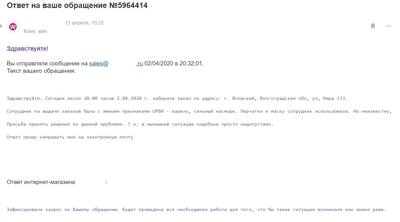 Однако в редакцию ИА «СоцИнформБюро» обратилась жительница города Волжского. Женщина уверяет, что в одном из пунктов доставки интернет-магазина в городе-спутнике, ее обслуживала сотрудница с явными признаками ОРВИ.
