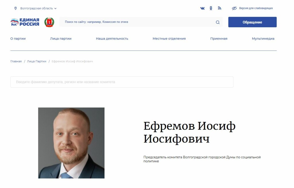 К слову, депутатом Волгоградской городской думы, руководителем Комитета по социальной политике является сын госпожи Соловьевой – Иосиф Ефремов.