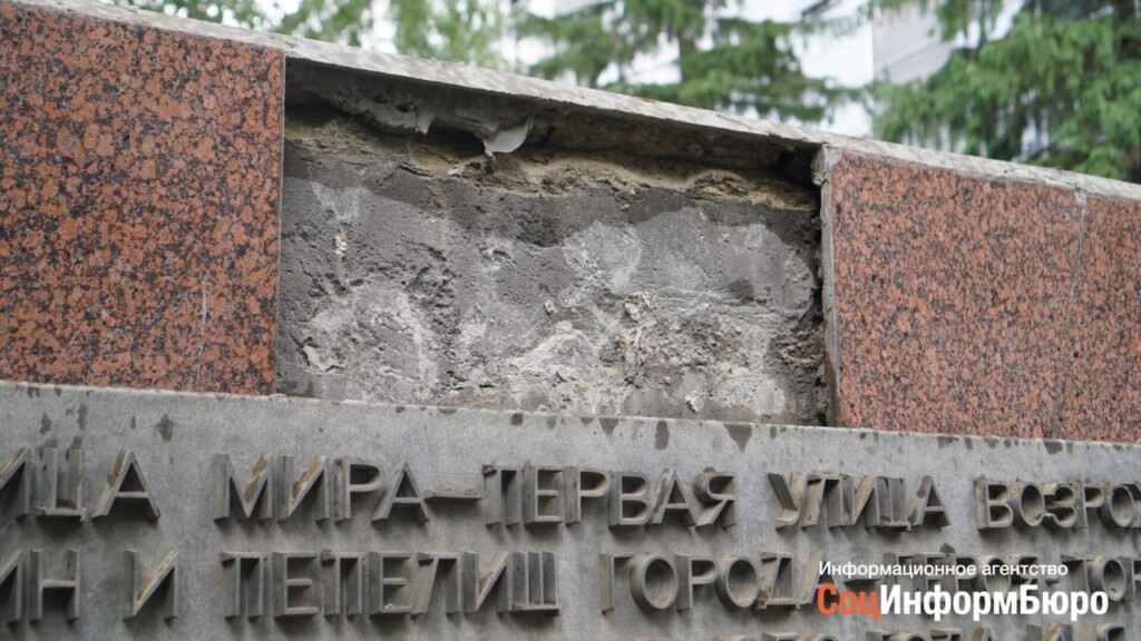 Очередным грустным пятном на репутации администрации города становятся памятник Жертвам политических репрессий «Уходящие в небо» на улице Чуйкова и стела на улице Мира, на которой выгравированы стихи волгоградского поэта Льва Кривошеенко. Оба памятника потеряли куски мрамора, которые облицовывали постаменты, а памятник Жертвам политических репрессий и сам начал разрушаться.