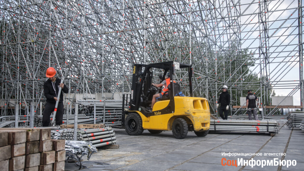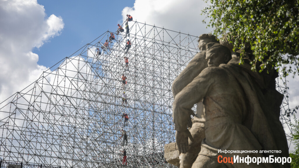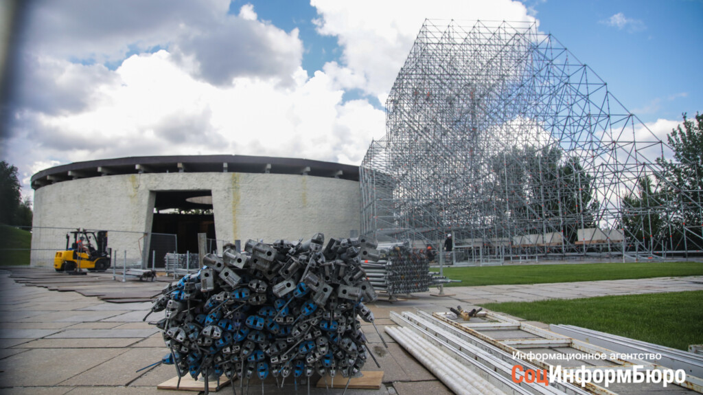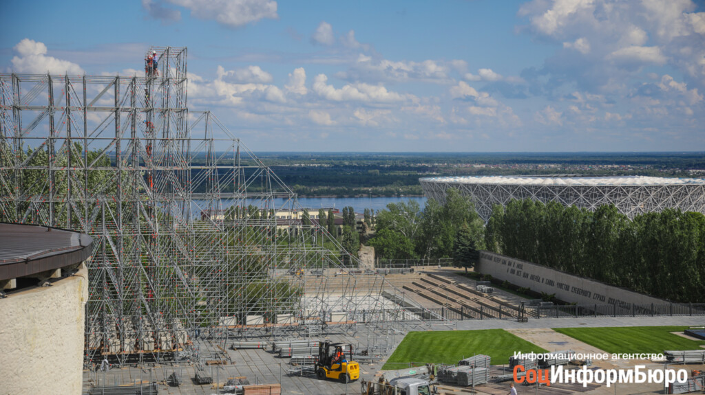 Действо пройдет у Зала воинской славы на Мамаевом кургане — там уже начали возводить леса для строительства праздничной площадки. Журналистам ИА «СоцИнформБюро» удалось понаблюдать за процессом подготовки к концерту.