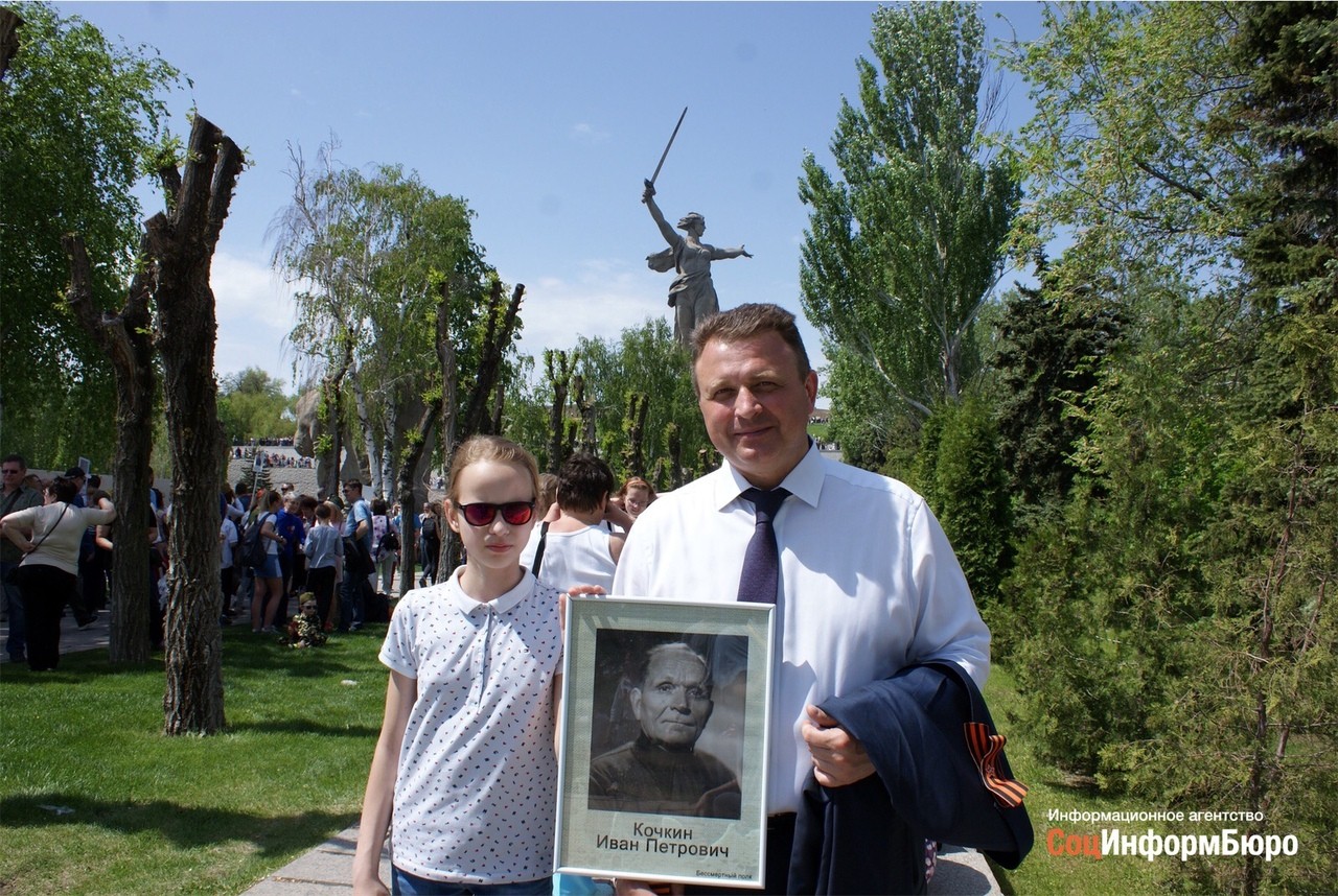 Взрослые и дети с портретами родных – участников Великой Отечественной войны традиционно прошли от Дома Павлова по проспекту Ленина до Мамаева Кургана.