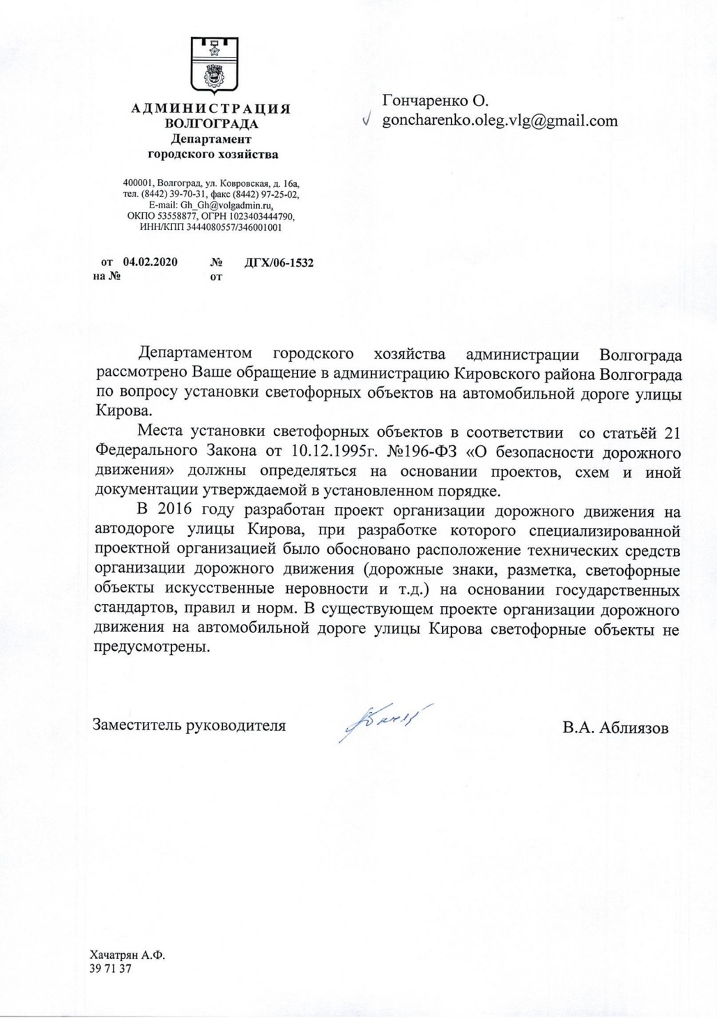 Однако в ответ получил отписку о том, что согласно плану 2016-го года светофоры на улице Кирова не предусмотрены. Такой ответ получил Олег Рохлов от заместителя руководителя Департамента городского хозяйства Виталия Аблиязова.