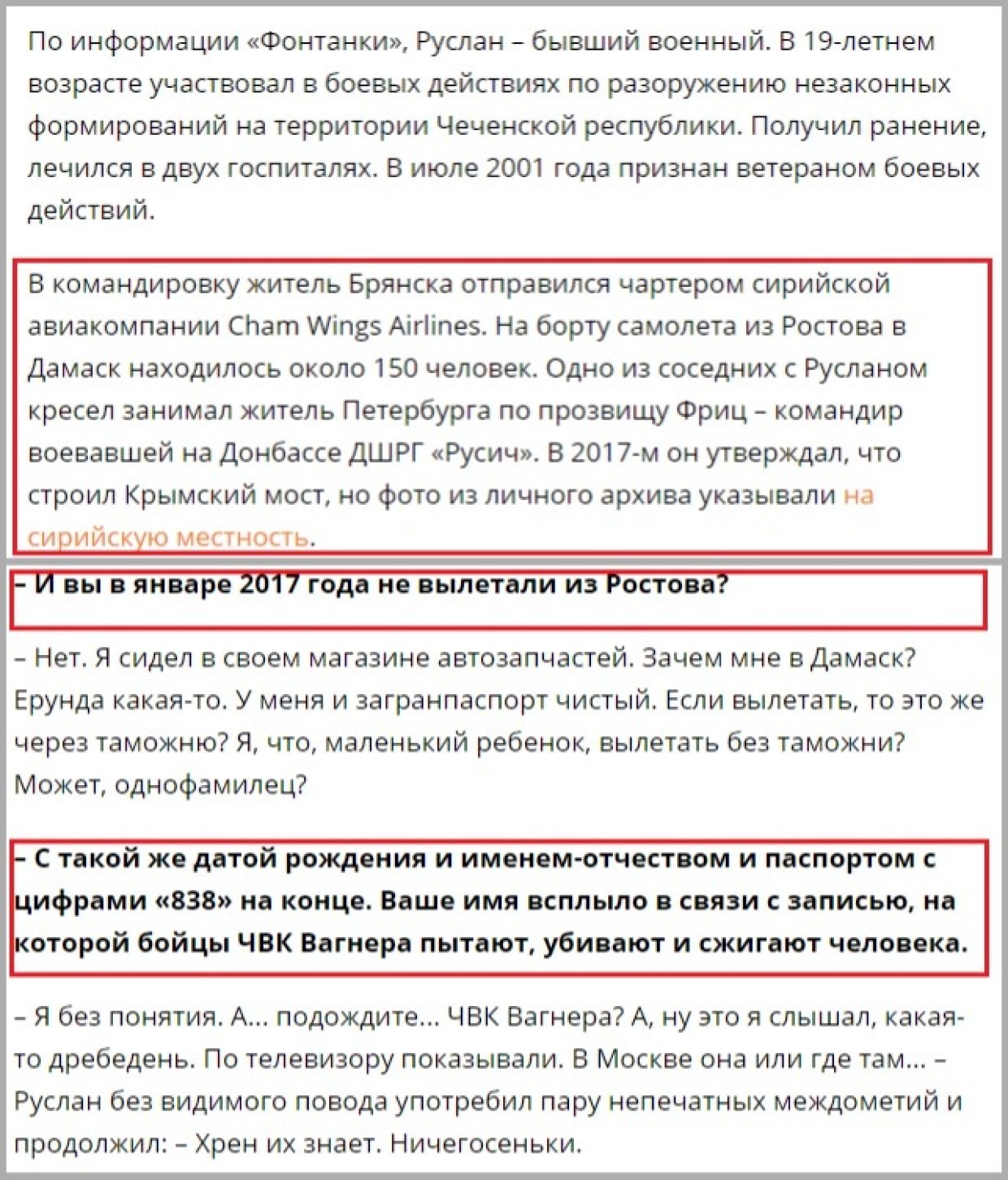 Так, в статье «Фонтанки» указано, что в 2017 году Руслан совершал перелет по маршруту Ростов – Дамаск. В ходе регистрации использовалось удостоверение личности. Его последние цифры – «838».