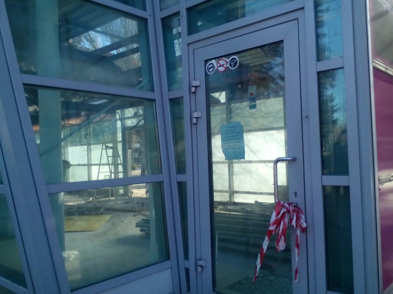 Снос постройки стартовал 19 февраля. Накануне у “стекляшки” демонтировали вывески. Сегодня рабочие разбирают несущие конструкции. В дальнейшем это место пообещали благоустроить.