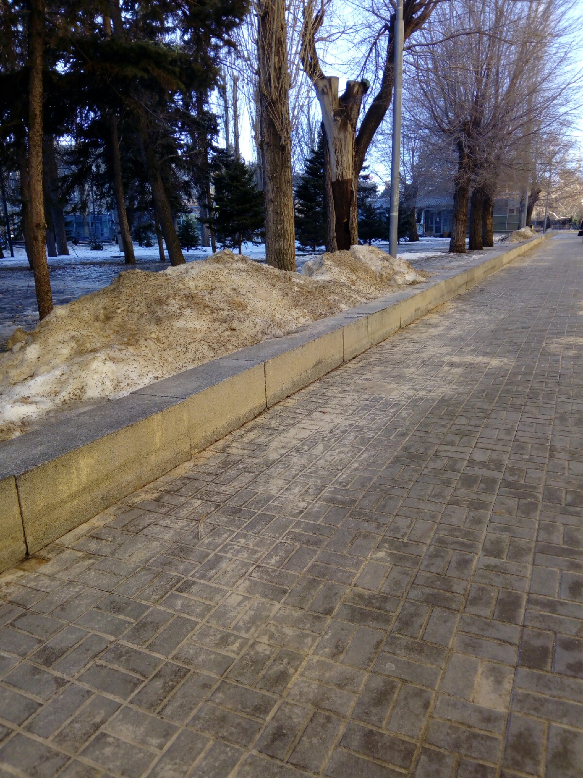 Аллея героев встретила грязными снежными массами, которые решили, видимо, никуда не вывозить. Они “уютно” расположились на всем пути следования до улицы Комсомольской. Их неприглядный вид удручает и лишь добавляет безнадежности в картину под названием “туристическая привлекательность”.