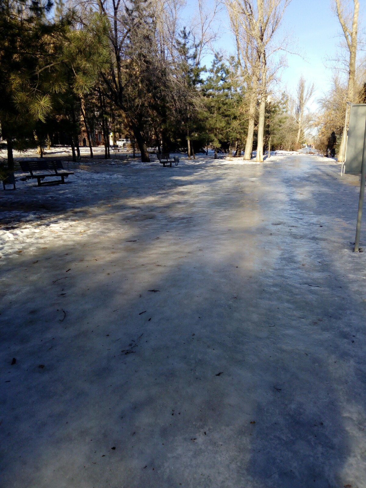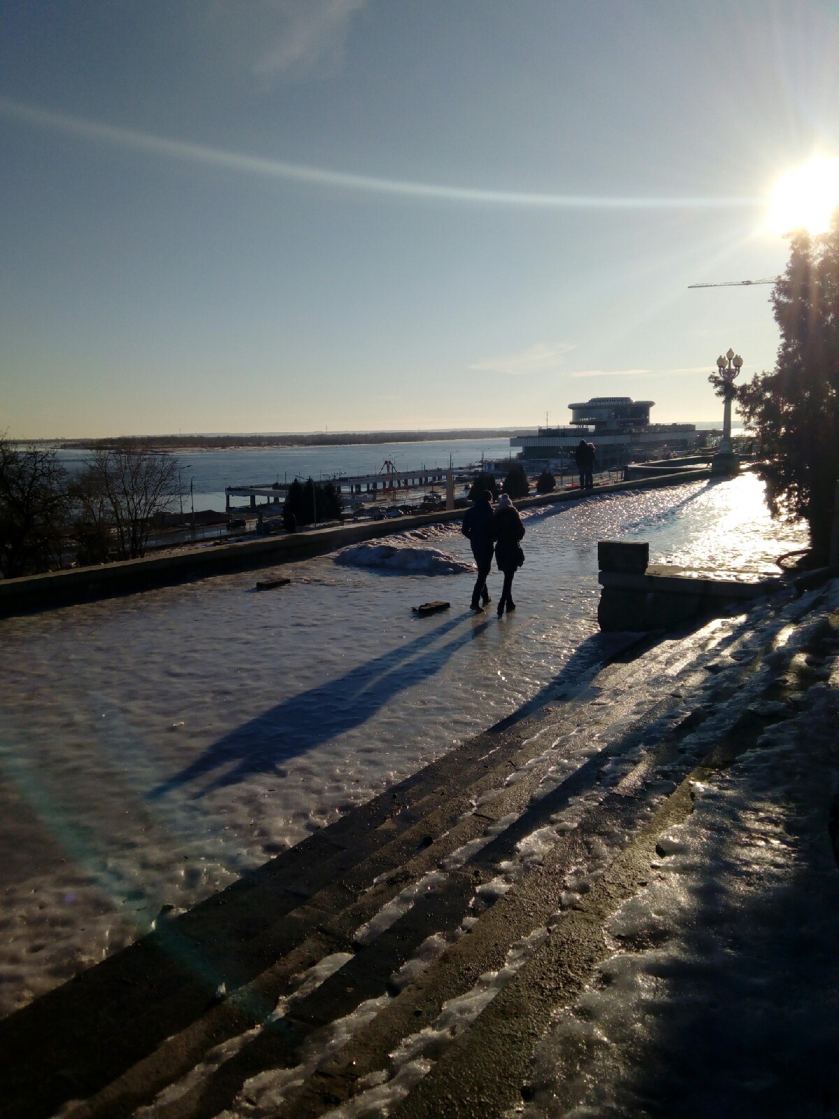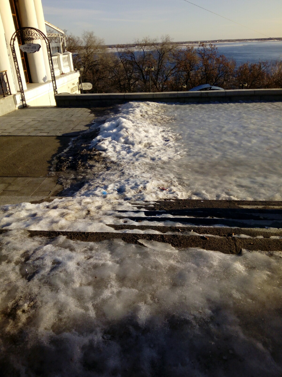 Как оказалось, путь до Центральной набережной, это еще “цветочки”. Самый “смак” был впереди. Верхняя терраса Центральной набережной представляет собой один сплошной каток.