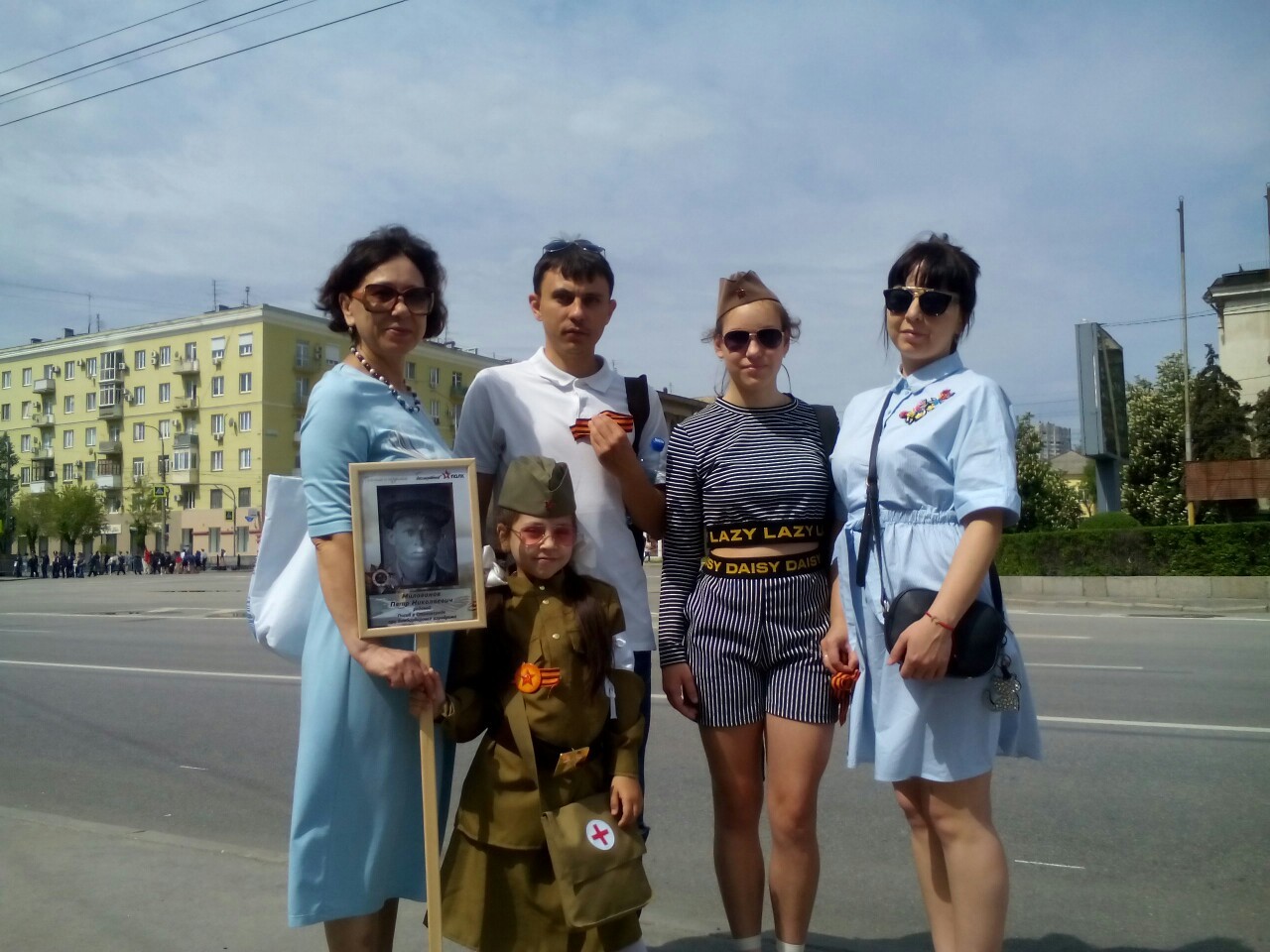 Так, уже третий год подряд в рядах шествия состоят потомки Петра Николаевича Милованова, который был механиком на аэродроме и погиб во время бомбардировок Сталинграда. Петр Николаевич захоронен на Мамаевом кургане. Его память чтит вся семья, в том числе и 7-летняя Василиса.