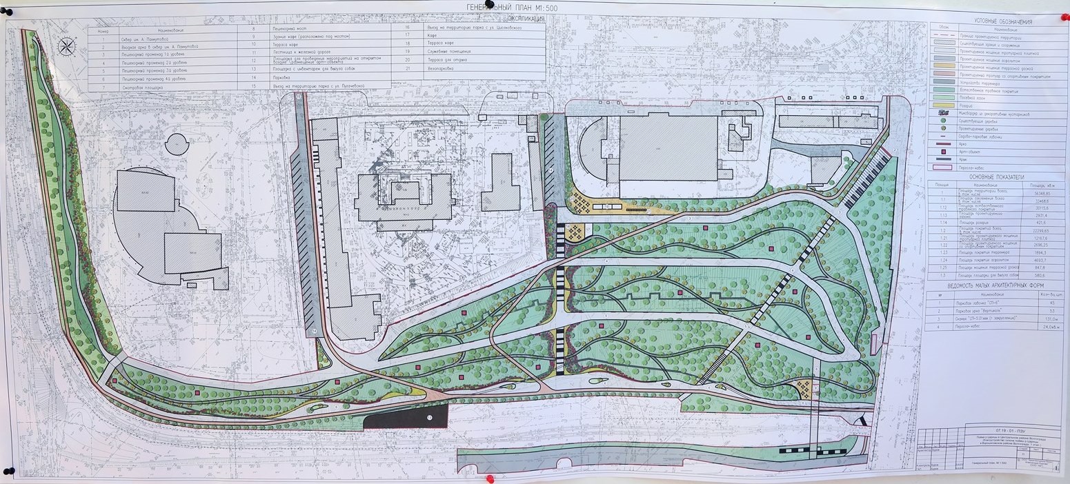 Агрономы планируют на правом склоне поймы высадить 284 крупномерных дерева и 1463 кустарника. Все саженцы лиственных деревьев будут иметь высоту от 3 до 5 метров. Украсят склон цветники из двух тысяч кустов роз.