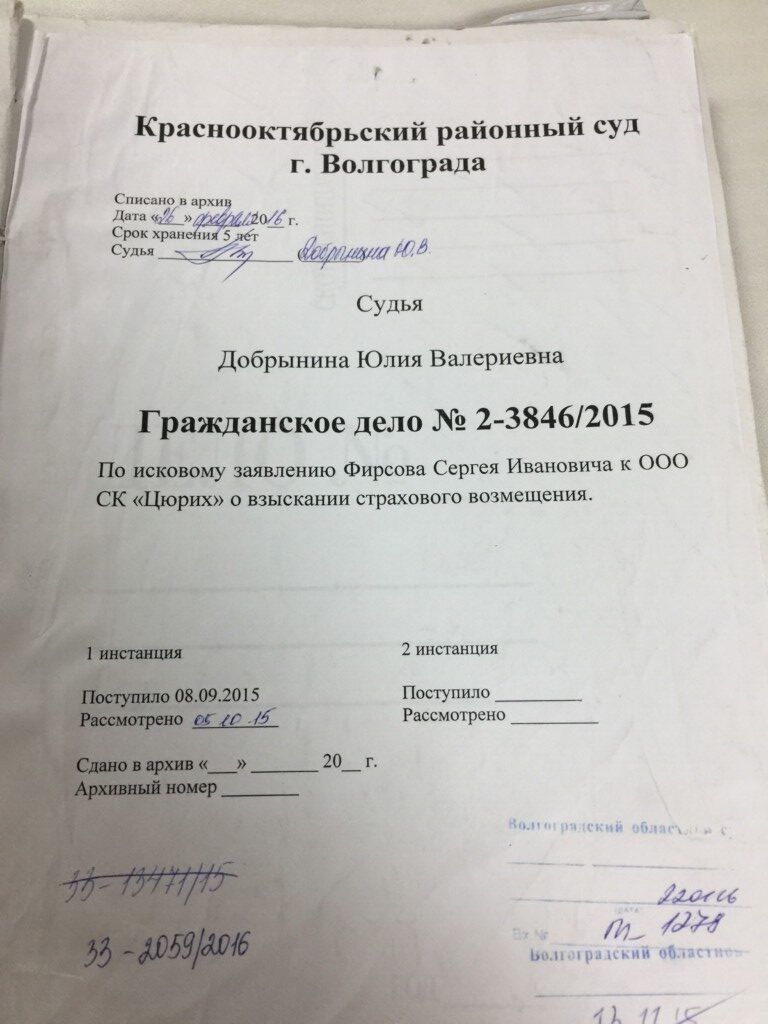 В последствии, второй участник ДТП, которым оказался некто Фирсов С.И., обратился в суд с требованием о взыскании суммы страхового возмещения, неустойки, судебных расходов с ООО СК «Цюрих», предоставив в качестве обоснования своих требований заключение об оценке стоимости восстановления своего автомобиля, выполненного ООО «Ценз». Сумма работ без учёта издержек составляла 101 тысячу рублей.