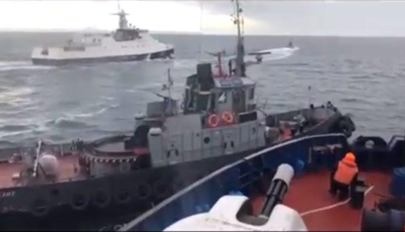 По данным ФСБ, корабли никак не реагировали на законные требования о немедленной остановке. Сопровождавшие их корабли и катера погранслужбы ФСБ РФ и Черноморского флота отметили «опасное маневрирование» украинских судов. С целью их принудительной остановки пришлось применить оружие. В результате инцидента трое членов украинских экипажей получили легкие ранения. Пострадавшим оказана медицинская помощь.