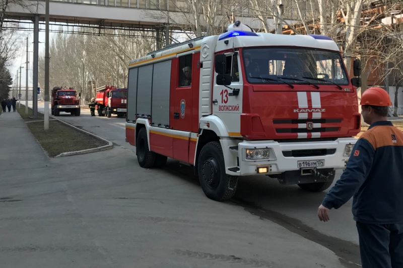 После получения условного сигнала в кратчайшие сроки к месту условного пожара прибыли пожарные, газоспасательная служба объекта, а также экстренные службы города Волжского. По прибытию подразделений звенья газодымозащитной службы провели разведку обстановки и эвакуировали персонал объекта. Сотрудники промышленного объекта провели заземление стволов и насосов пожарных автомобилей.