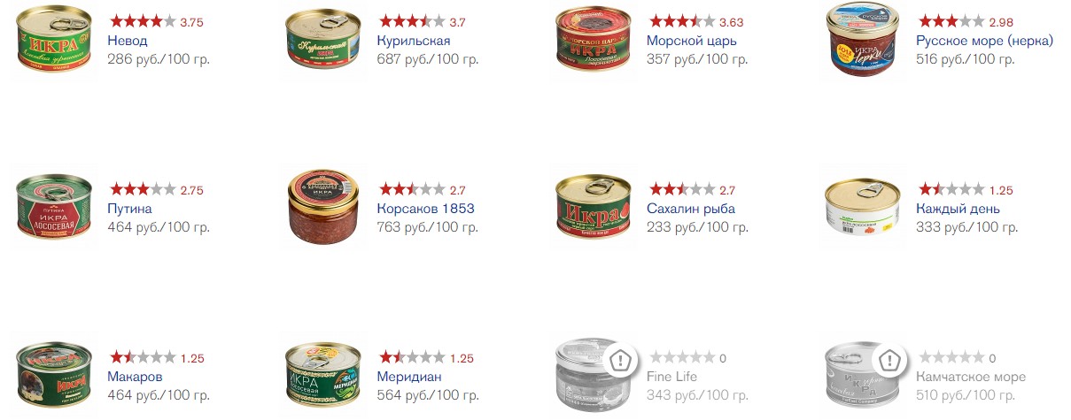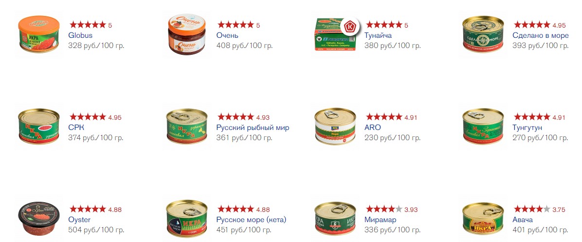 Примечательно, что в топ не попали более дорогие бренды, в том числе «Корсаков 1853» – 763 рубля за 100 грамм, икра «Курильская» – 687 рублей за 100 грамм и «Меридиан» – 564 рубля за 100 грамм.