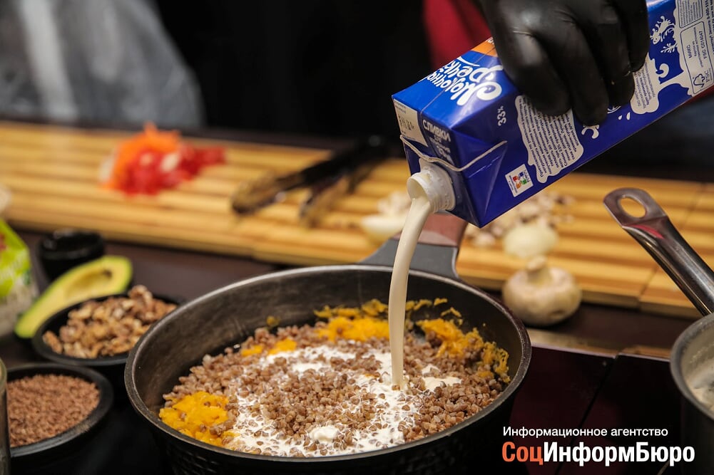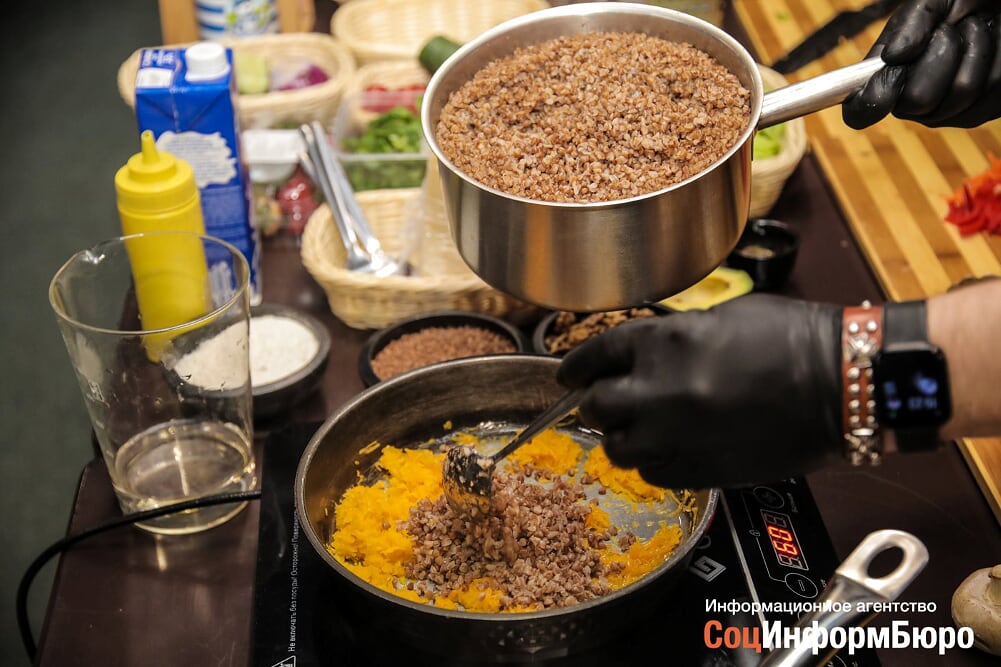 – Способ приготовления, как у обычного ризотто, только не с рисом, а с гречкой и без вина. Тыкву нужно будет натереть на мелкой терке. В нее добавляем гречку, сыр пармезан, затягиваем это все сливками и готово, – рассказывает кулинар.