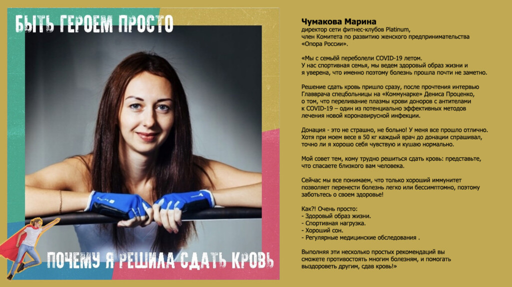 Суть акции заключается в том, что «героем» может стать каждый. И если вы победили СOVID-19 и у вас есть антитела к новому вирусу, вы можете помочь справиться с этой болезнью другим людям.