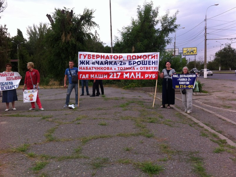 Участники долевого строительства объединились в борьбе за справедливость. В сообществе на сайте Вконтакте волгоградцы делились материалами дела. 35 человек вышли 25 июля 2017 года на пикет в Волгограде с требованием к чиновникам решить их проблемы.
