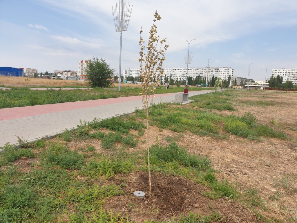 Новая прогулочная зона в городе Волжском Волгоградской области должна была стать эдаким «оазисом» посреди степи. Однако ситуация складывается по-настоящему вопиющая. Местные жители утверждают, что полива в так называемом парке нет, соответственно зелень здесь практически не приживаются.