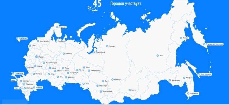 В конкурсе, в частности, участвуют аэропорты Архангельска, Анапы, Астрахани, Волгограда, Владивостока, Екатеринбурга, Казани, Калининграда, Краснодара, Нижнего Новгорода, Санкт-Петербурга и других городов. Также в проект вошли три аэропорта Москвы – Внуково, Шереметьево и Домодедово.