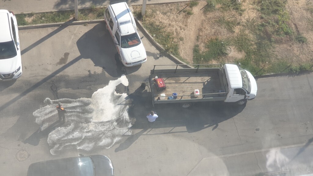 «21 августа во время работ по вывозу твердых коммунальных отходов произошло дорожно-транспортное-происшествие с участием мусоровоза, вследствие чего произошла поломка гидравлического клапана с частичной разгерметизацией бункера. Это стало причиной произошедшей течи на дорожное покрытие. В соответствии с требованиями Правил дорожного движения участникам дорожно-транспортно происшествия запрещено покидать место ДТП.