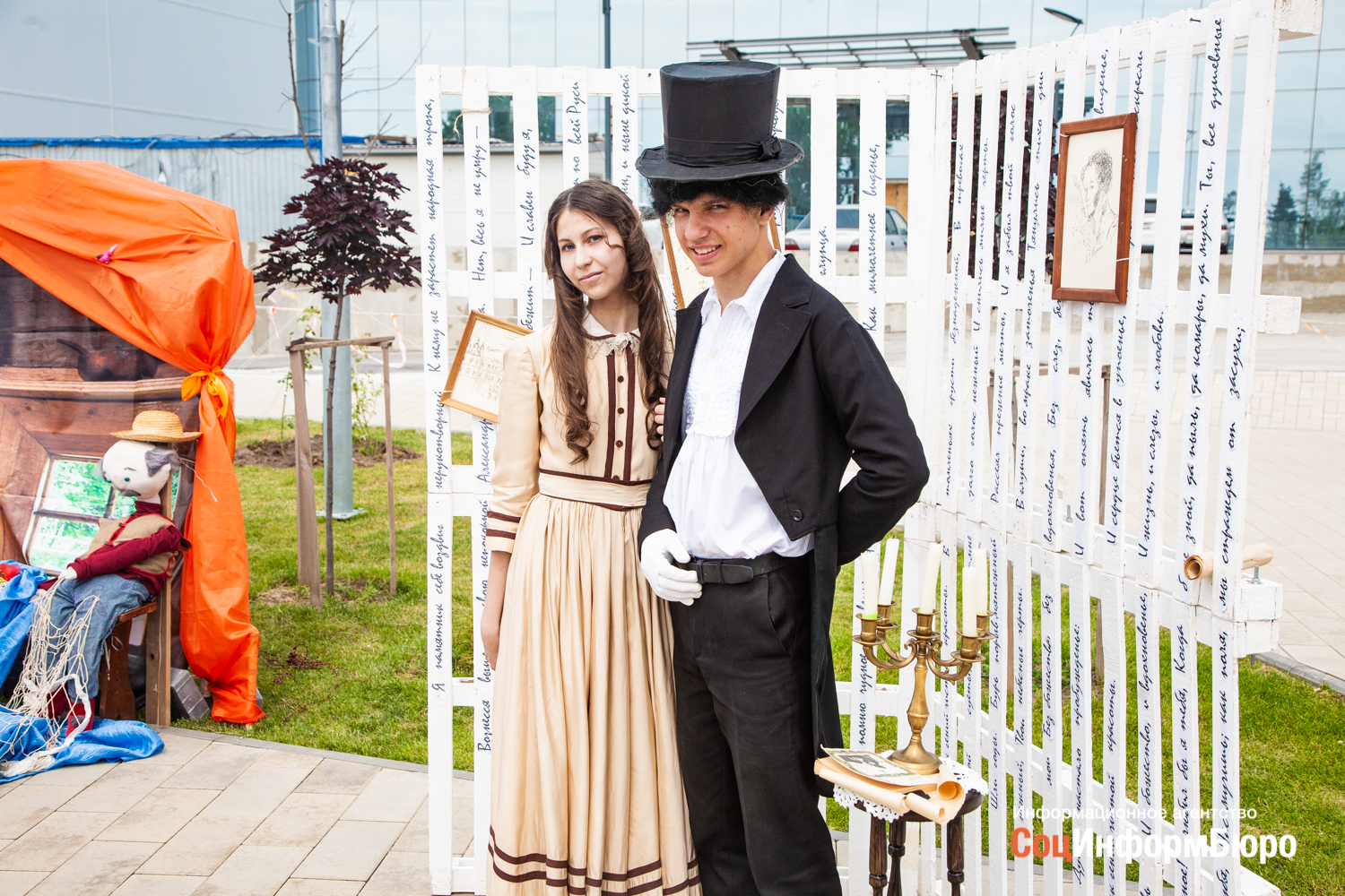 Для гостей мероприятия работали специальные фотозоны с героями произведений А.С. Пушкина. Все желающие могли сфотографироваться с самим поэтом, в роли которого выступил один из волонтеров.