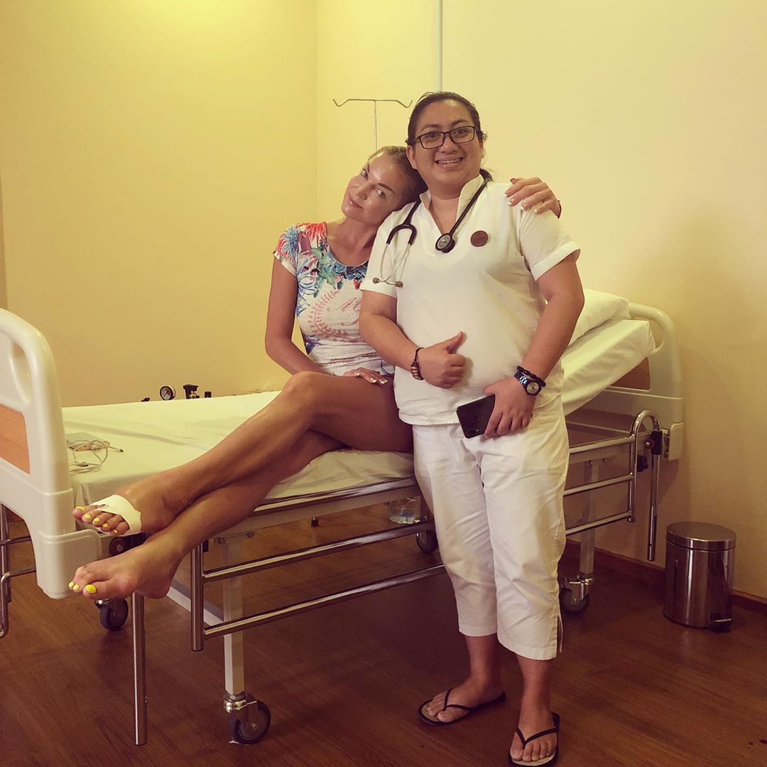 Об инциденте Волочкова рассказала сама в своем Instagram. Помимо фотографий в купальниках с пустынного песчаного пляжа, а также традиционных фото в шпагате, появилось изображение балерины, сидящей на больничной кушетке. Анастасия на фото приобнимает за плечи доктора, а нога балерины перевязана медицинским бинтом.