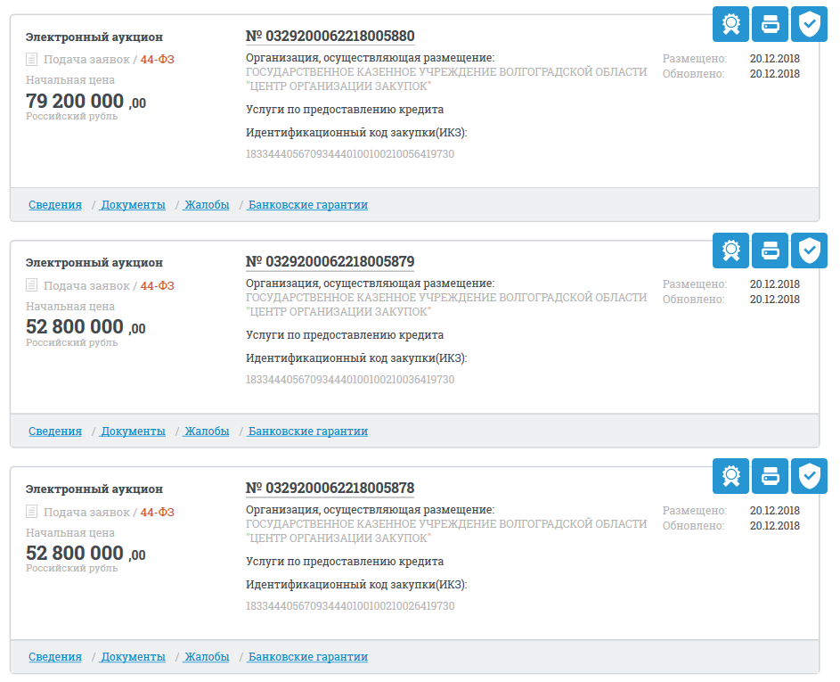 На сайте госзакупок появились три лота на кредиты общей стоимостью почти 700 миллионов рублей плюс проценты.