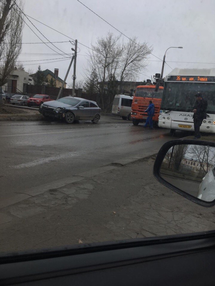 Судя по опубликованным фотографиям, “Опель” и Камаз столкнулись и перекрыли движение по Качинцев в одну сторону. Автобус, следовавший по маршруту №35, попытался объехать ДТП по встречной полосе и бордюру, однако, судя по всему, “сел” на него и не может продолжить движение. “Благодаря” этому обе полосы для транспорта оказались заняты.