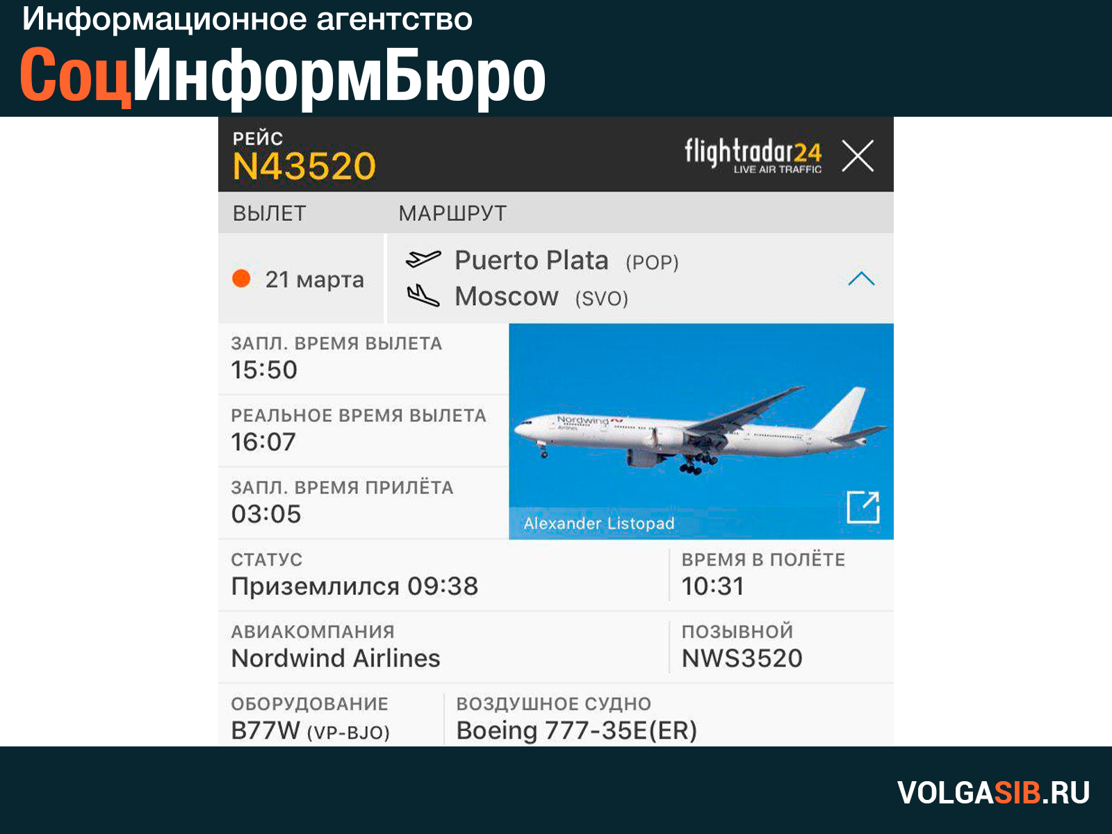 22 марта в самолете авиакомпании Nordwind Airlines рейса NWS43520, летевшего из Доминиканской Республики в аэропорт Шереметьево в Москве, скончался пассажир. Об этом корреспондентам «СоцИнформБюро» сообщил источник в авиакомпании.
