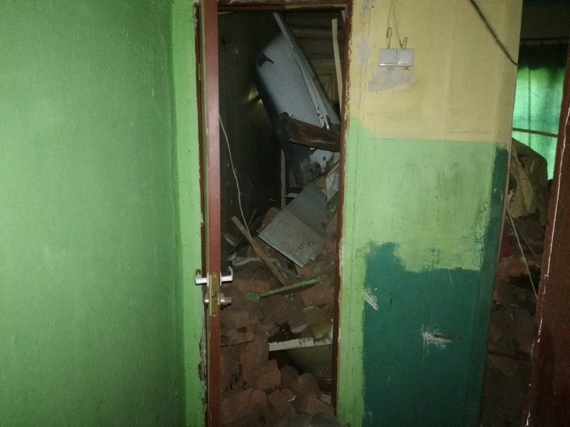 Кирпичи продолжают падать внутрь разрушенной квартиры. В остальных квартирах сыпется штукатурка, на стенах увеличиваются трещины. Люди не могут нормально пользоваться сантехникой, у них отрезан газ. Единственное, что жителям предложила районная администрация – это за свой счет сделать экспертизу износа дома и переехать в общежитие, которое, к слову, по своему состоянию не лучше этого разваливающегося дома.