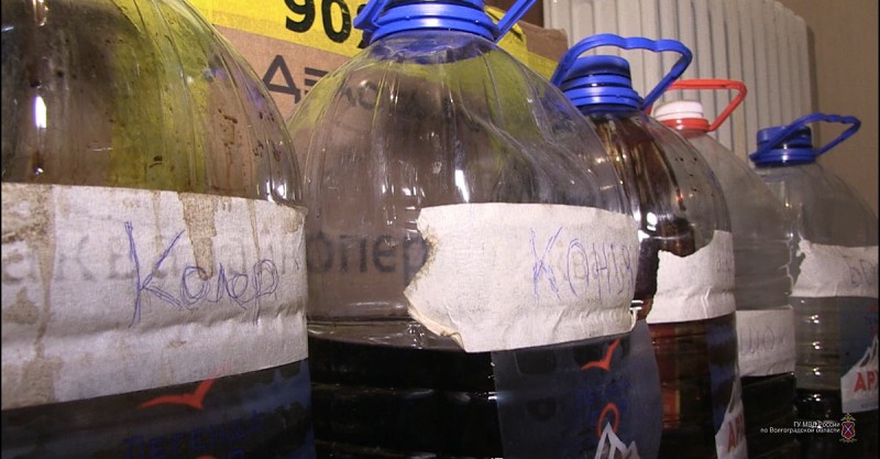 На территории склада, расположенного в Дзержинском районе Волгограда, суррогатный алкоголь производился на специальном оборудовании в антисанитарных условиях. Предприимчивые мужчины смешивали спирт с водой, различными красителями и вкусовыми добавками, а затем наклеивали на бутылки поддельные акцизные марки и этикетки различных, в том числе элитных, брендов. Сырье для изготовления контрафакта поставлялось из Северо-Кавказского региона.