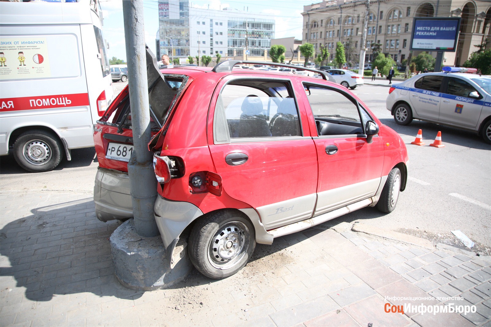 Днём в Волгограде на ул. Комсомольская произошло ДТП: столкнулись Daewoo Matiz и микроавтобус, ехавший по определённому маршруту. По словам очевидцев, водитель сразу снял все опознавательные знаки, на каком маршруте работал маршрут.