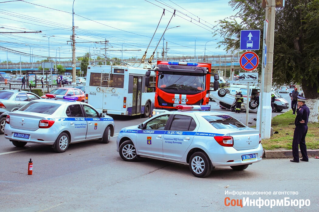В Центральном районе Волгограда напротив ТЦ «Европа сити молл» перевернулась «Skoda».