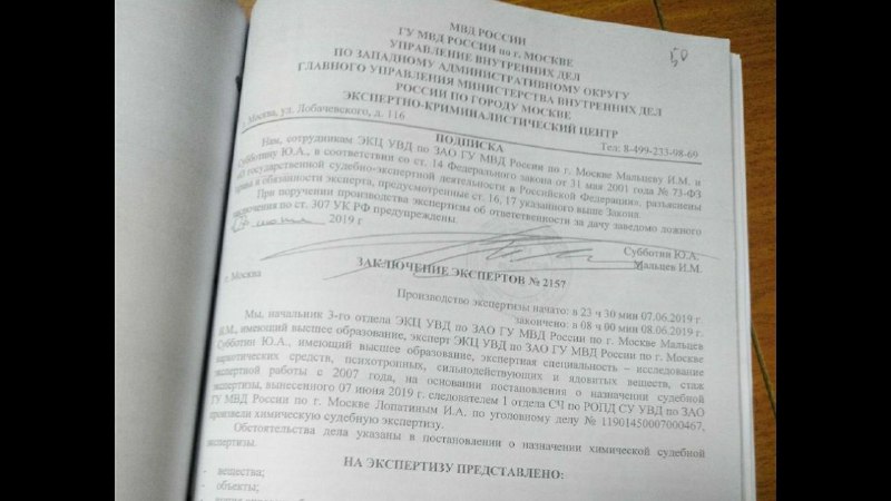 Фото соответствующего заключения экспертов столичного главка МВД в своем Telegram-канале также опубликовал Павел Чиков. Он является руководителем международной правозащитной организации «Агора», адвокаты которой представляют интересы журналиста.