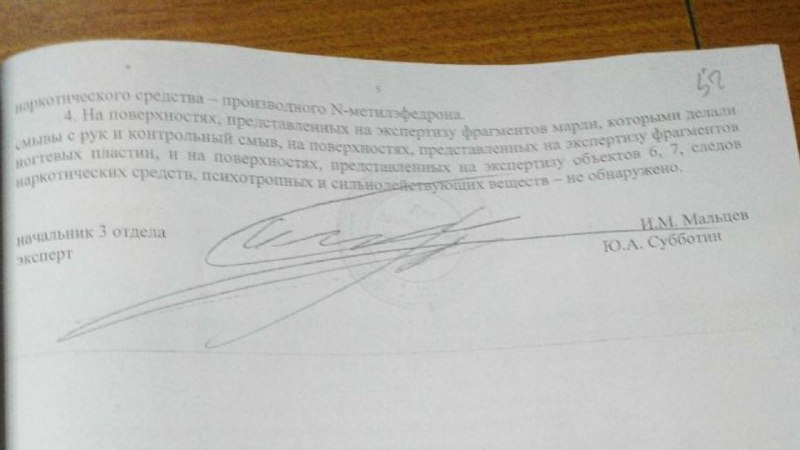 На смывах с ладоней рук и на ногтях Ивана Голунова не нашли следов наркотических веществ. Из этого следует, что в день задержания журналист не брал в руки наркотических веществ.