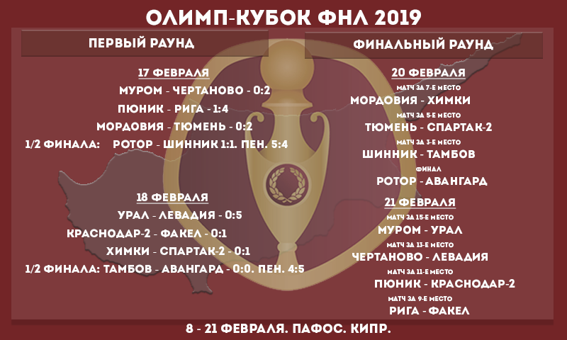 Кубок ФНЛ близится к своему завершению. Последние матчи пройдут 20 и 21 февраля. В среду определятся итоговые позиции с 1 по 8 места, а днём позже – с 9 по 16 места.