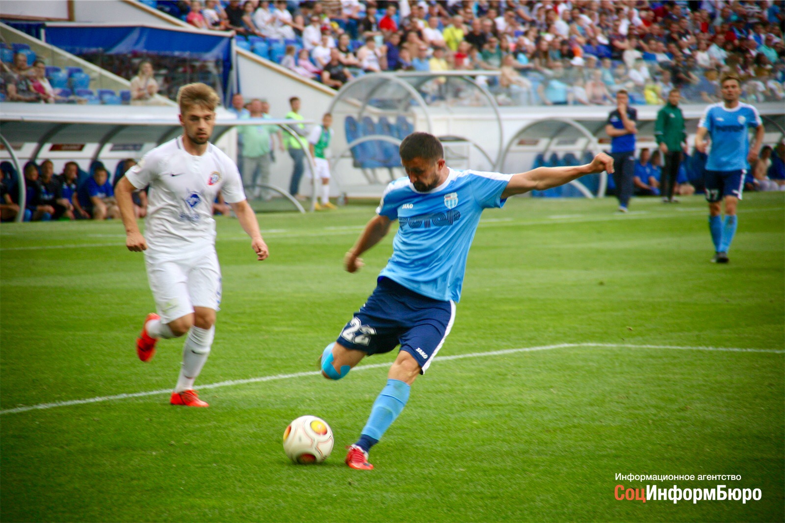 К середине тайма игра выровнялась. “Чертаново” всё чаще выходило к воротам волгоградцев, появились опасные моменты. На 23-й минуте Данил Пруцев пробил по воротам Михаила Филиппова – мяч прошёл рядом со штангой. Военный сектор несколько раз пытался запустить “волну” по стадиону – не получилось. Спустя некоторое время то же самое повторил фан-сектор – зашло лучше. Как раз в этот момент опять опасный момент был у Владимира Лобкарева, но снова не хватило чего-то в реализации.